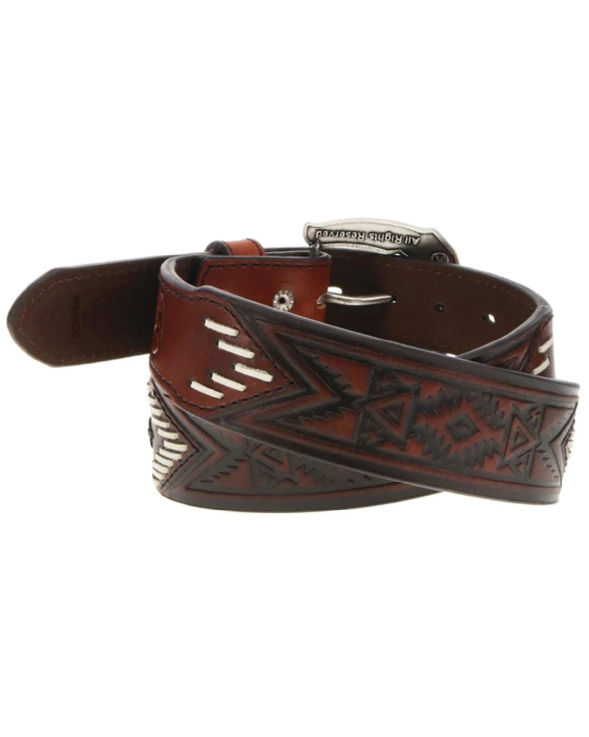 - Laced and tooled Southwestern print details