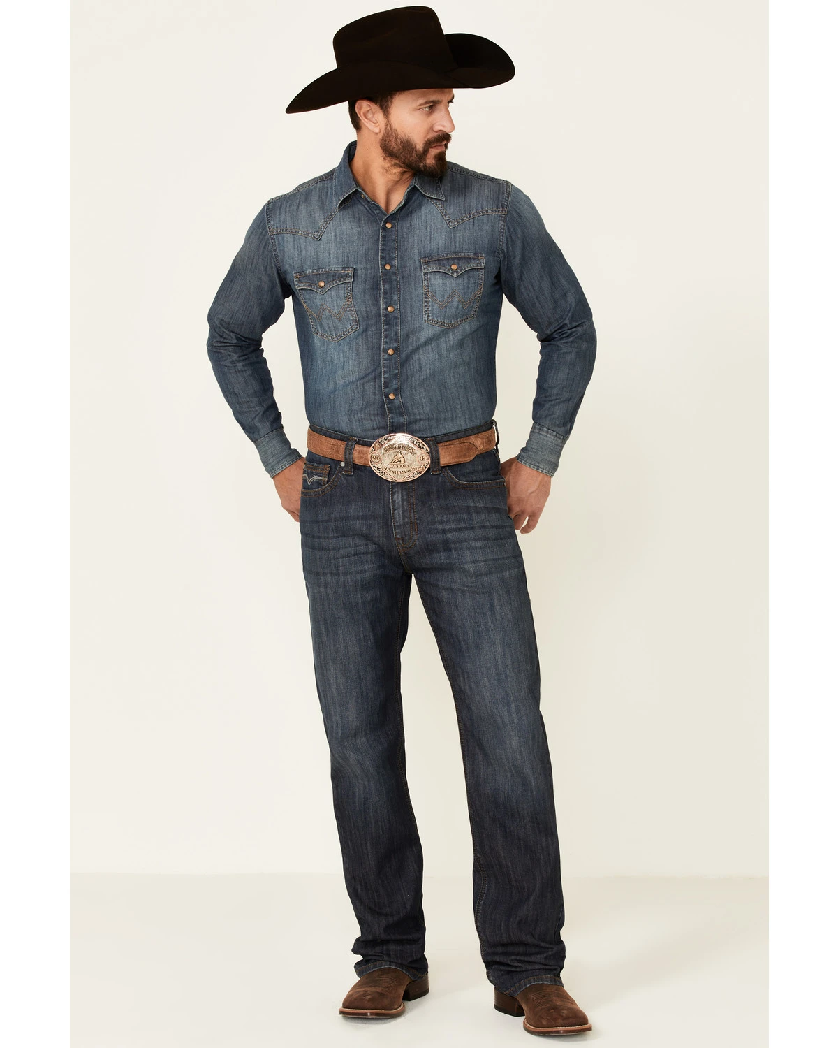 Rock & Roll Denim Men’s Hooey Double Barrel Dark Vintage Stretch Relaxed Stackable Bootcut Jeans