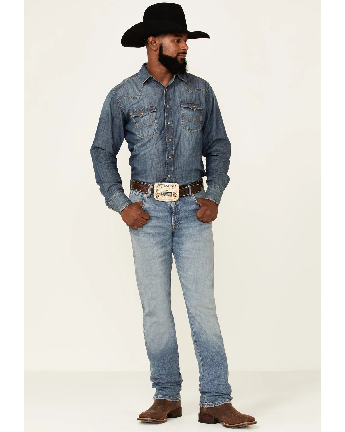 Wrangler Retro Green Men’s Gralin Light Wash Stretch Slim Straight Jeans